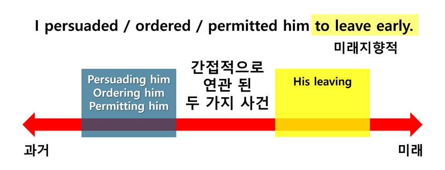 (4) 주어 persuade 목적어 to부정사: I persuaded him to leave. (o)