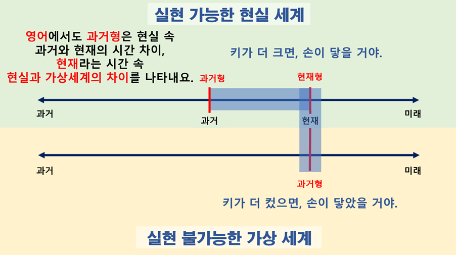 이렇게 현실과 가상의 사건을 시제 차이로 나타내는 건 가정법에서 잘 나타나죠.